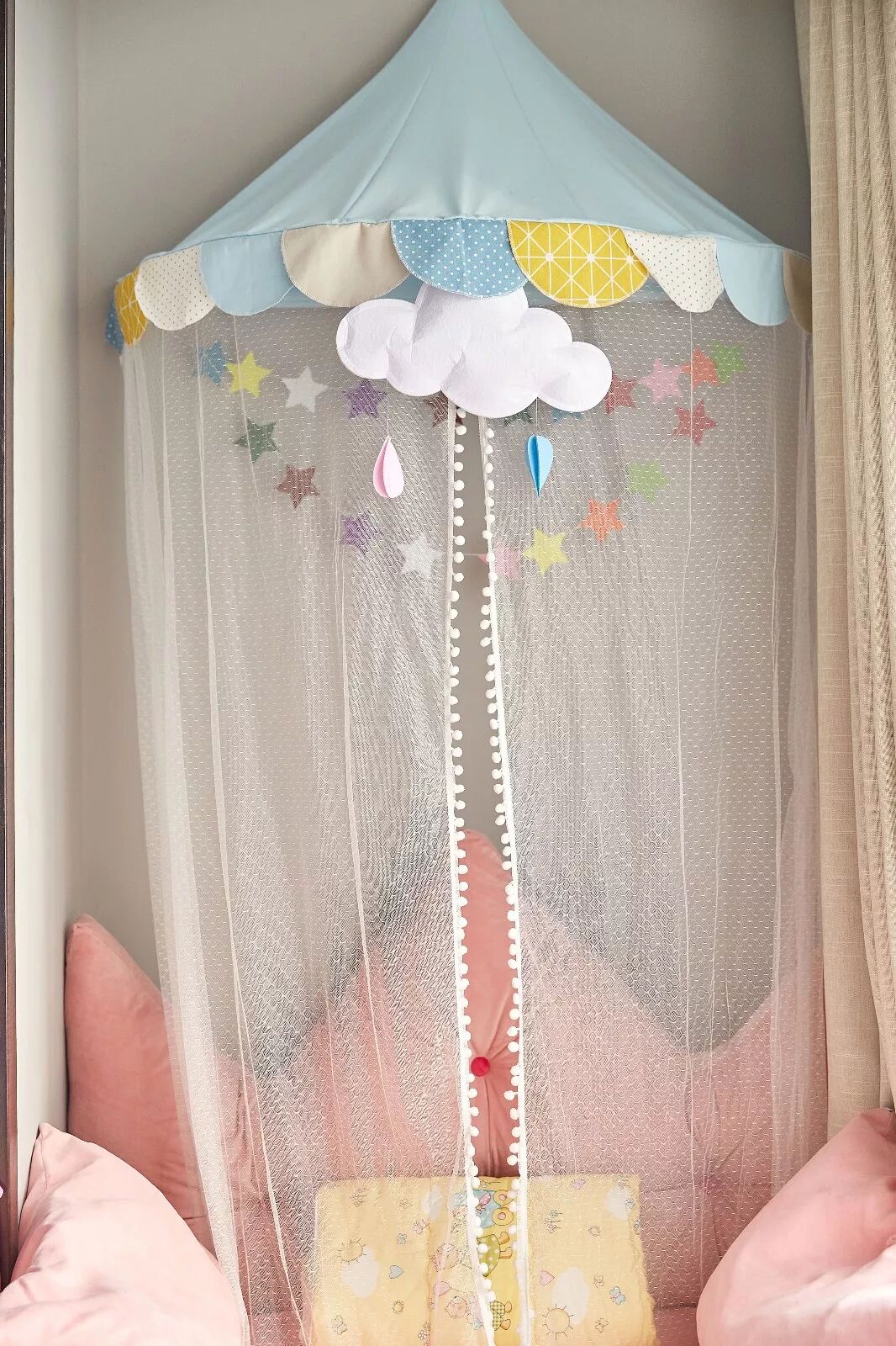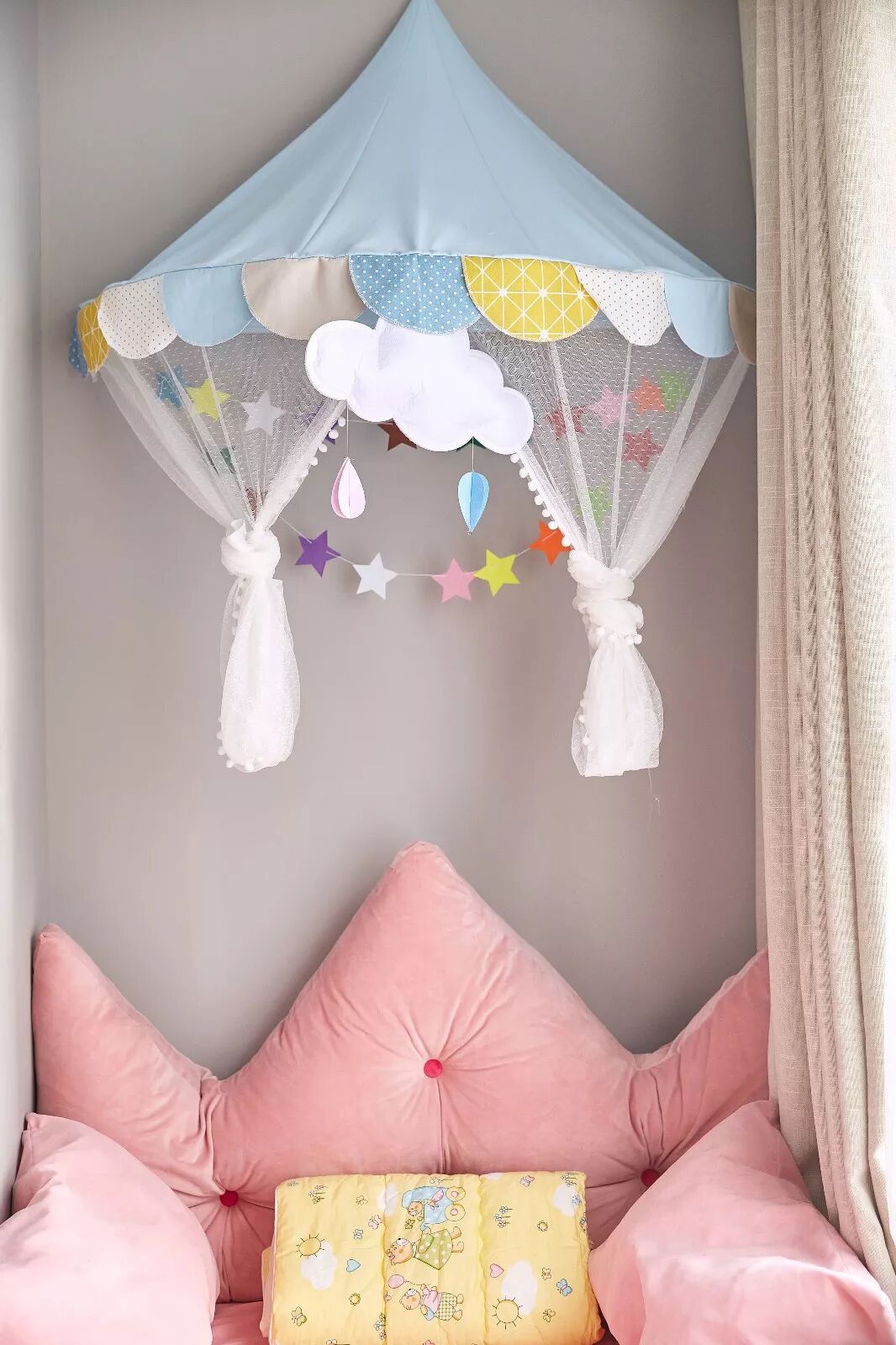 ▲结合一款童趣纱帘,特地给家里小公主打造的粉色浪漫。